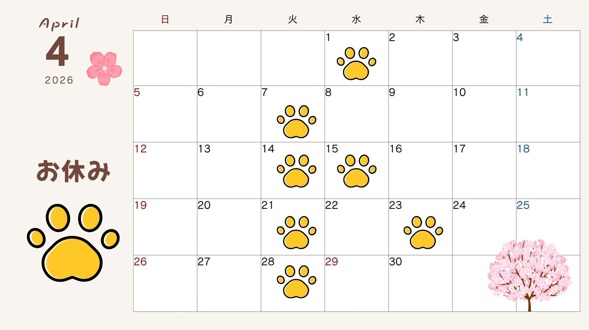 2026年4月のカレンダーです。