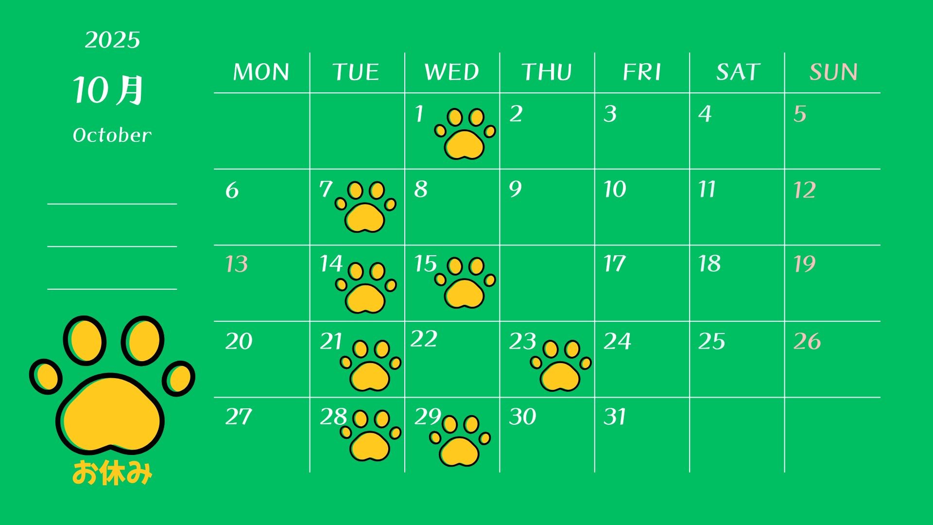 23日(火)は祝日のため営業いたします。25日(木)を振替休日とさせていただきます。